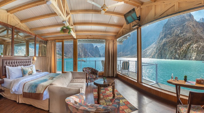 Lokasinya berada di Attabad Lake, Hunza Valley, Villa ini dihargai sekitar USD 90-140 / malam dengan kapasitas 6 orang.